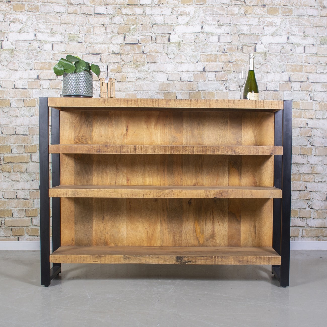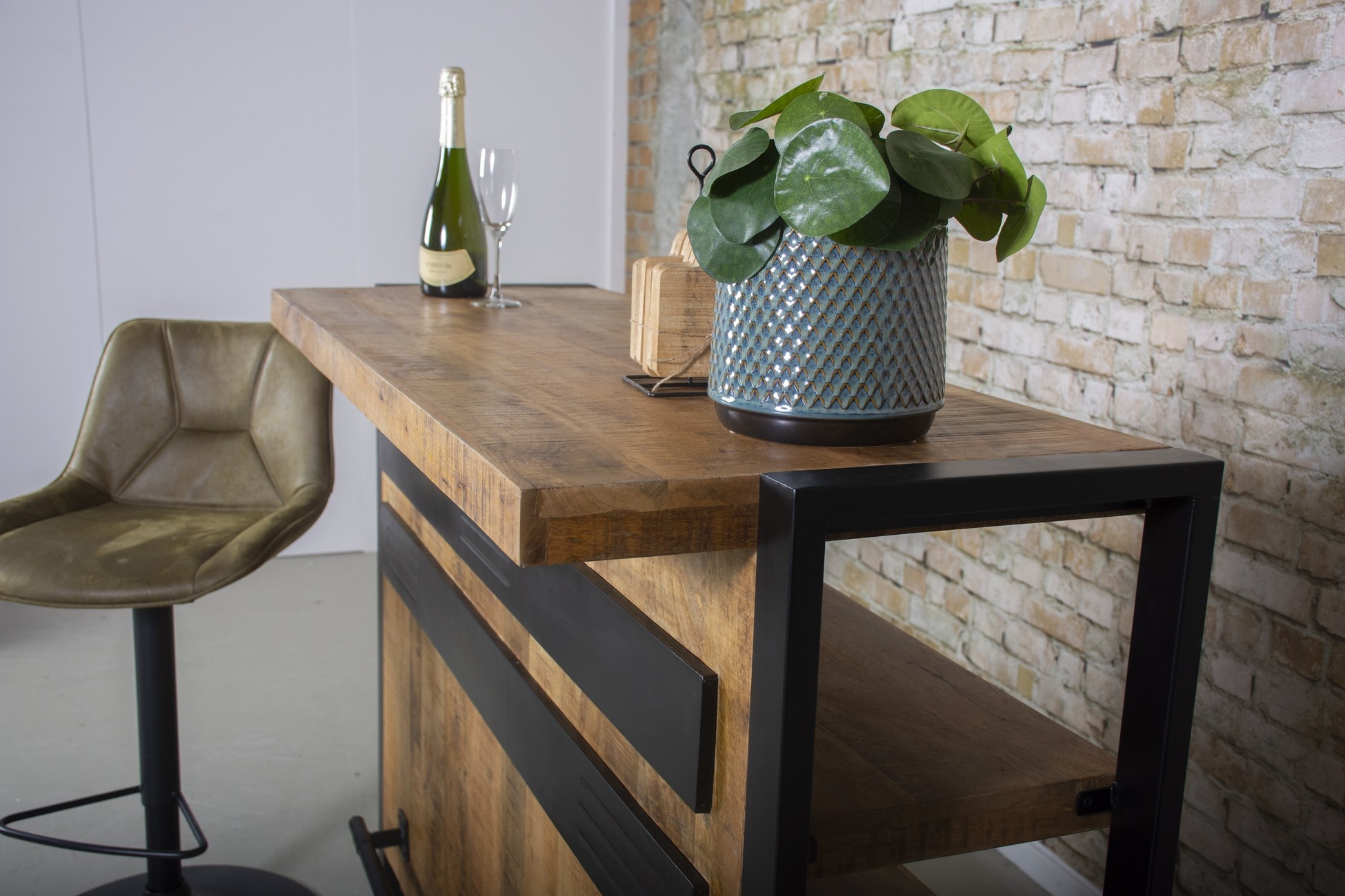 Der Bartisch Bozz ist aus Mangoholz mit einem Stahlrahmen gefertigt. Der Bartisch ist die perfekte Ergänzung für verschiedene Einrichtungsstile. Die Kombination aus Holz und Stahl macht diesen Bartisch zu einem echten Hingucker. Die Maße der Bar sind 140 x 50 x 105 cm. Die Bar passt gut zu verschiedenen Einrichtungsstilen wie modern, ländlich und industriell. Der Bartisch ist Teil der Bozz-Wohnzimmerserie. Diese Wohnserie besteht aus verschiedenen Möbeln wie TV-Schränken, Sideboards, Bücherregalen, Beistelltischen und Couchtischen.