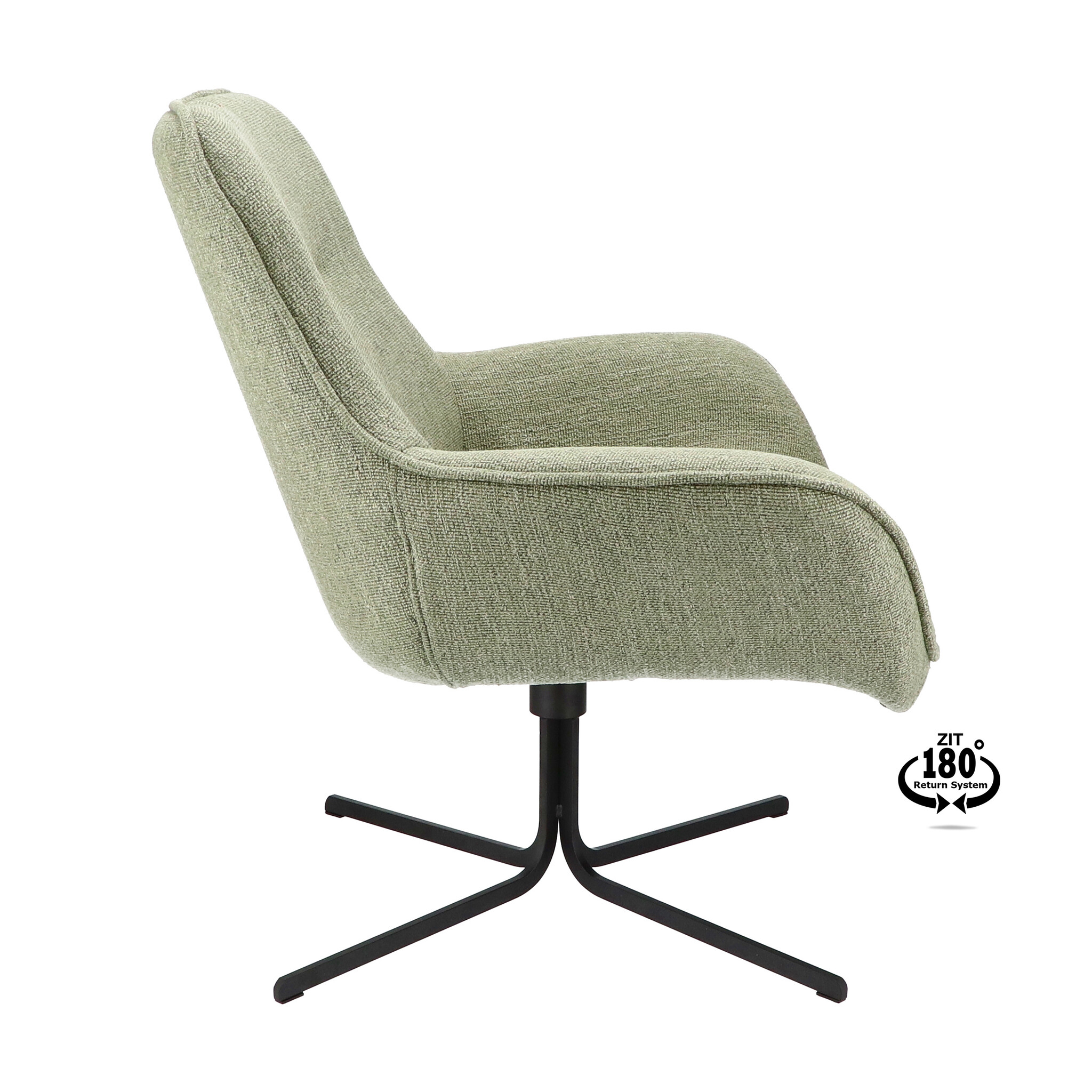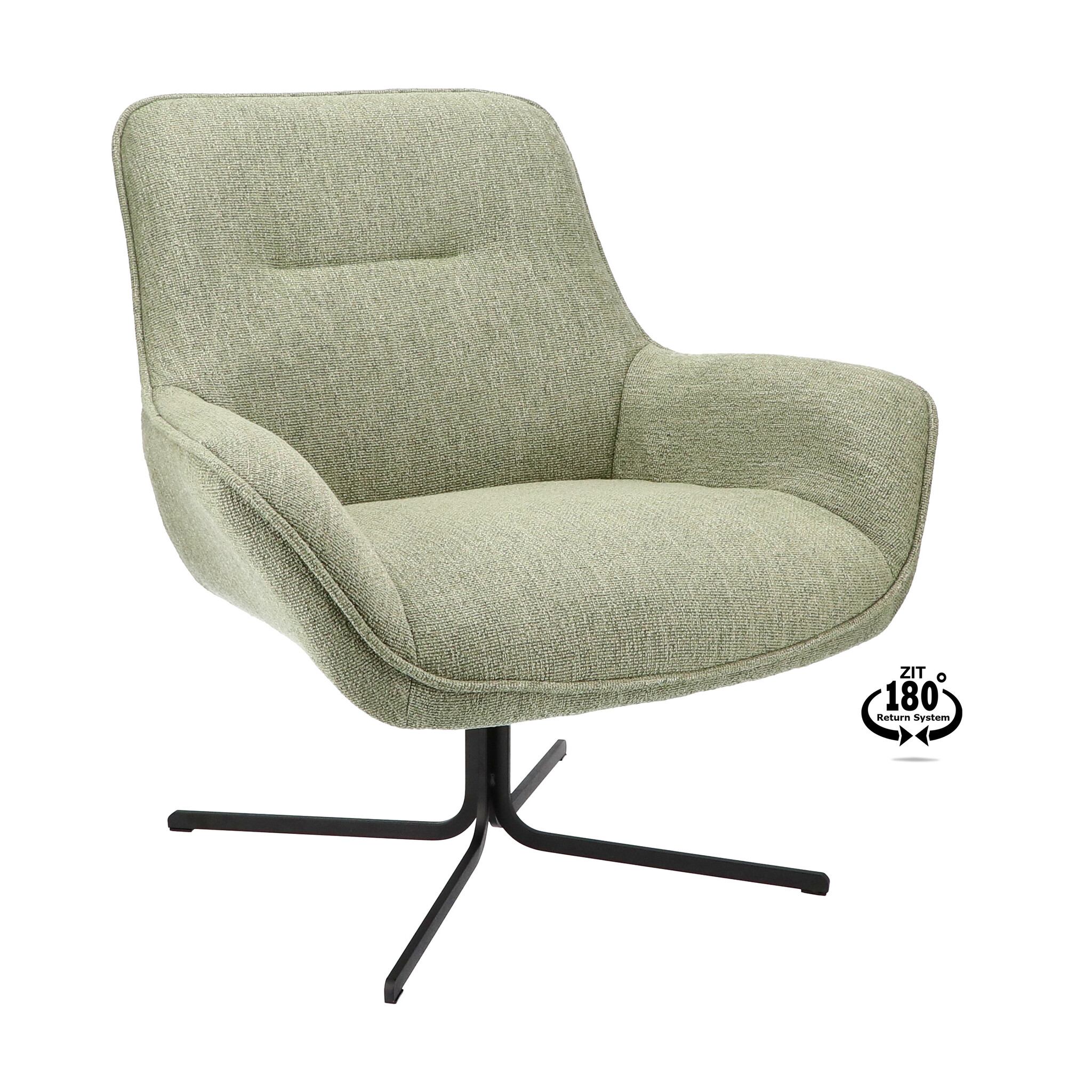 Dieser Drehsessel ist in 4 trendigen Farben erhältlich: Dunkelgrau, Cognac, Hellgrau und Grün. Dieser schöne Sessel lässt sich gut mit verschiedenen Einrichtungsstilen kombinieren, z.B. ländlich, industriell oder modern. Der Sessel ist dank seiner weichen Sitzfläche äußerst bequem. Der Sessel ist aus Blattstoff gefertigt und voll autoreturnierbar.