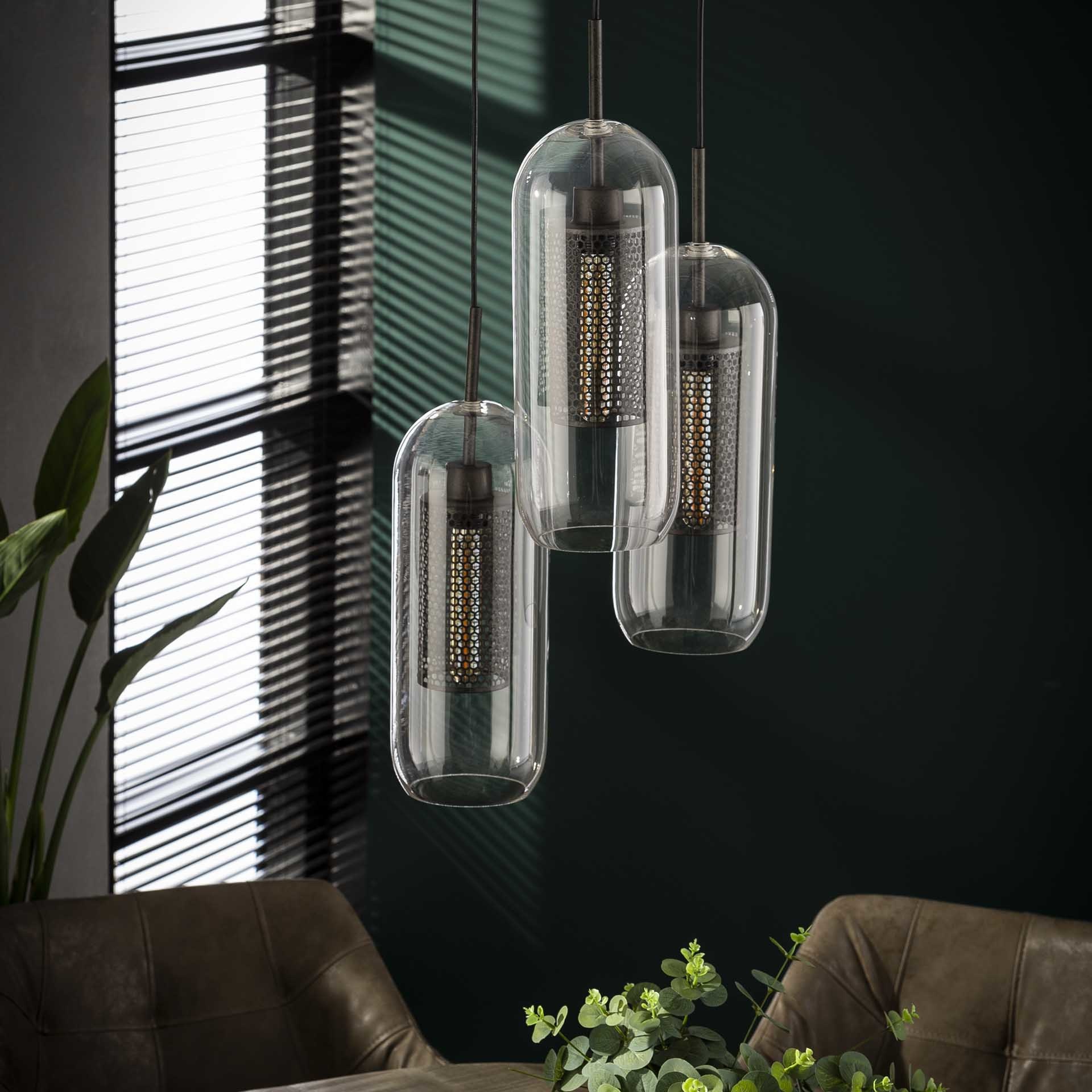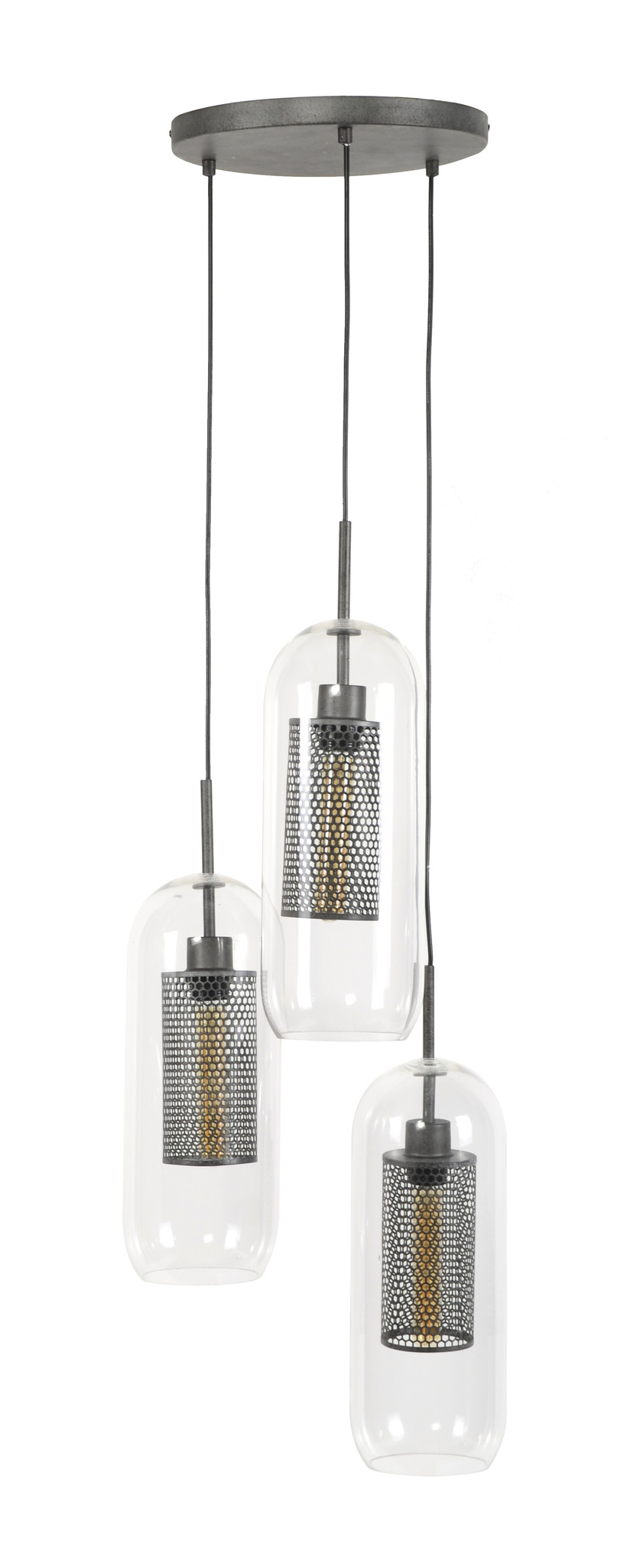 Verspielte Hängelampe 3xø15 Gitter mit gestuftem Glas