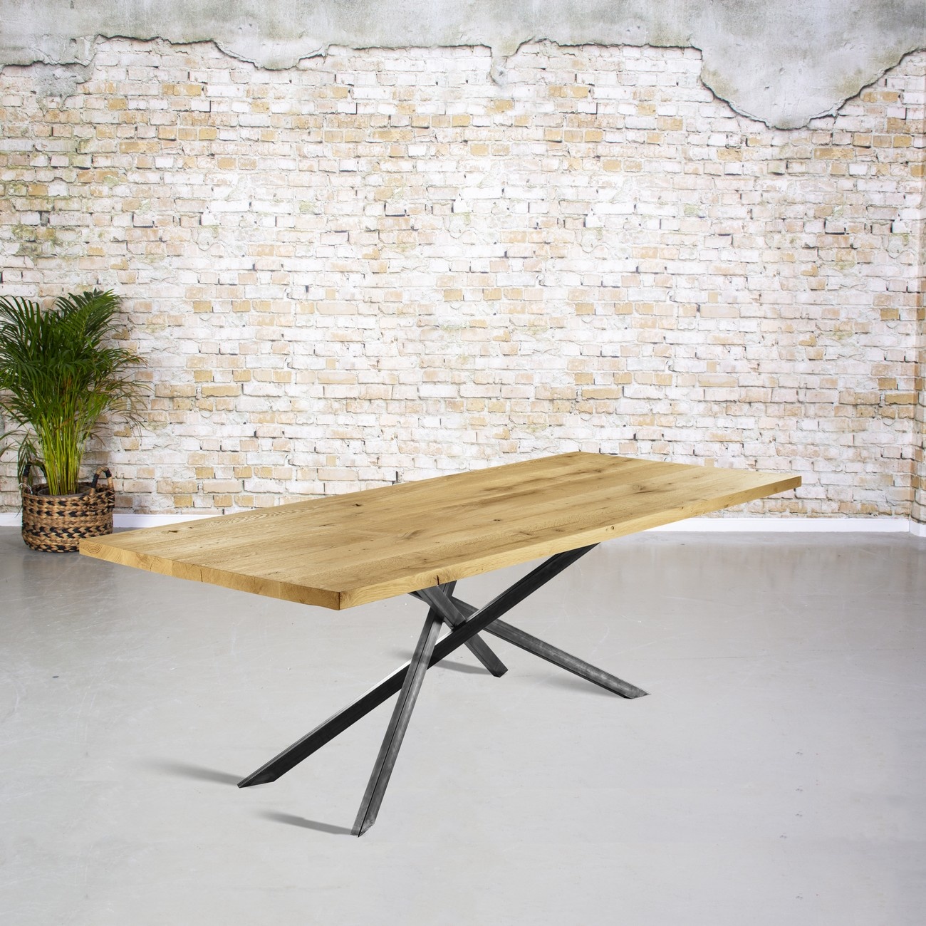 Schöner Eichen-Esstisch mit Mikado-Beinen und gerader Kante