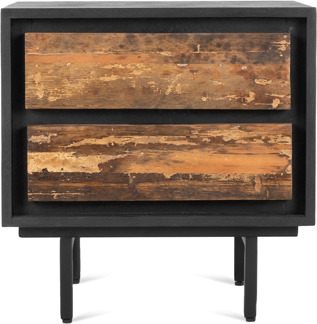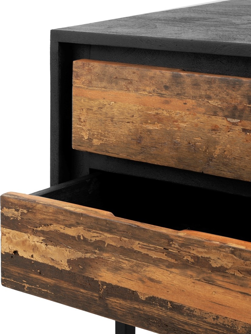 Der Nachttisch Anayah ist aus recyceltem Holz und schwarzem Mangoholz gefertigt.