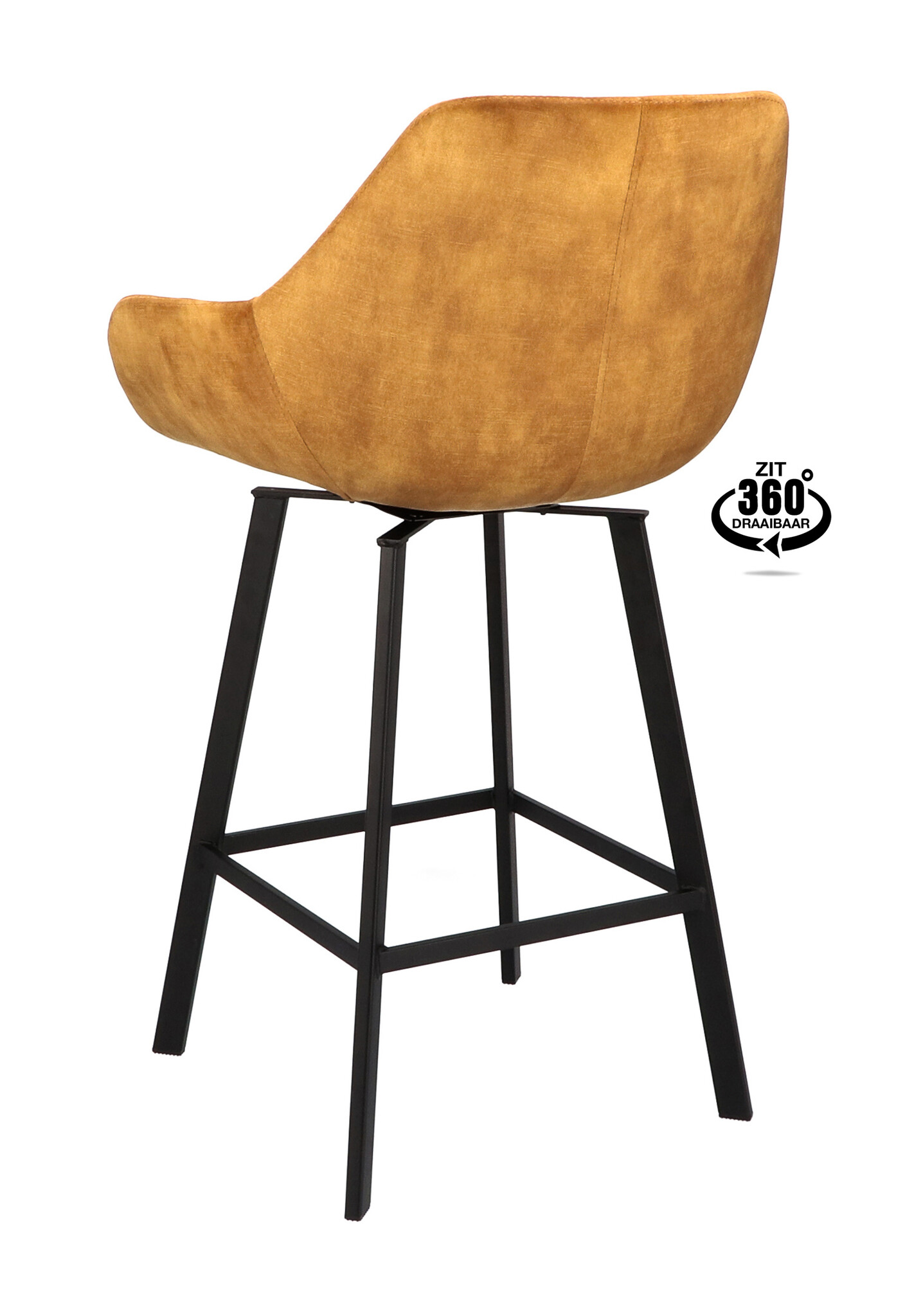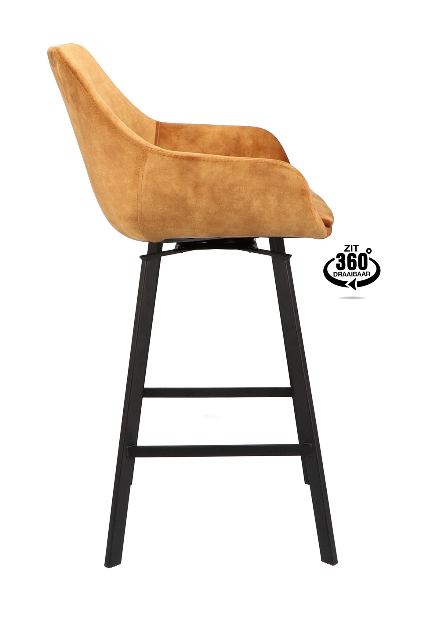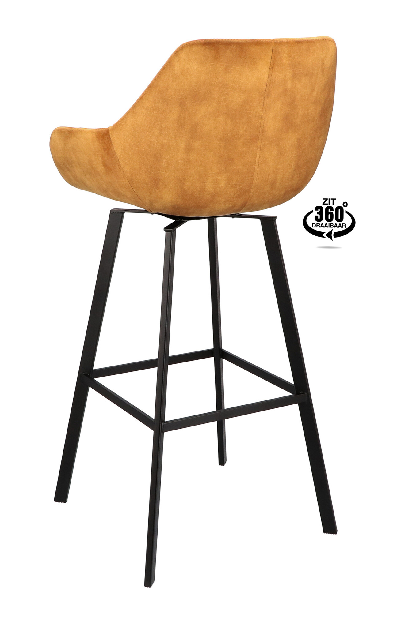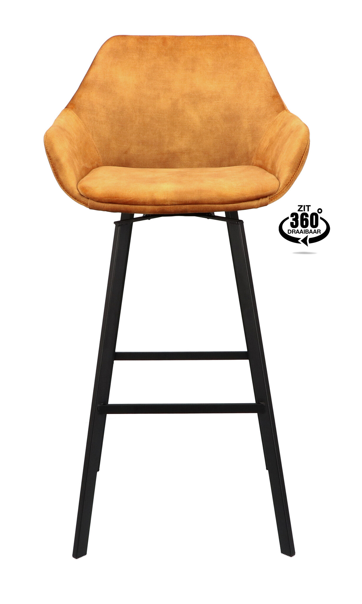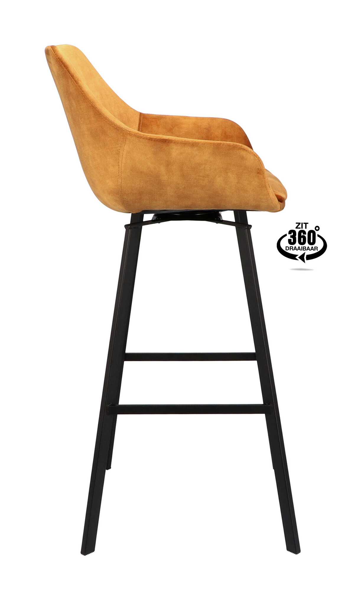 Barstool Luxury is a super cool barstool! Made in the well-known Adore fabric, this is a super soft velvet fabric available in various trendy colours! This model comes in anthracite, cognac and hunter. Armchairs and sofas are also available in the Adore fabric, so you can put together a very cool interior! The legs are made of black steel. Ideal for the Luxury bar stool is that it rotates 360 degrees. Furthermore, this model is available in two heights, so it comes in a seat height of 65 and 80cm, making it a suitable size for any bar or kitchen island. If you want to make sure it doesn't get stained you can treat your your chairs with Protexx you are guaranteed that it won't get stained for at least 3 years!