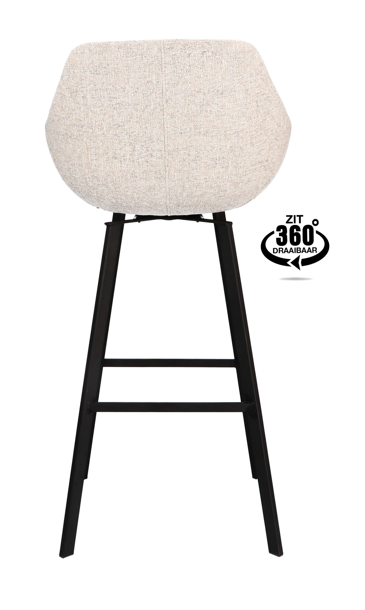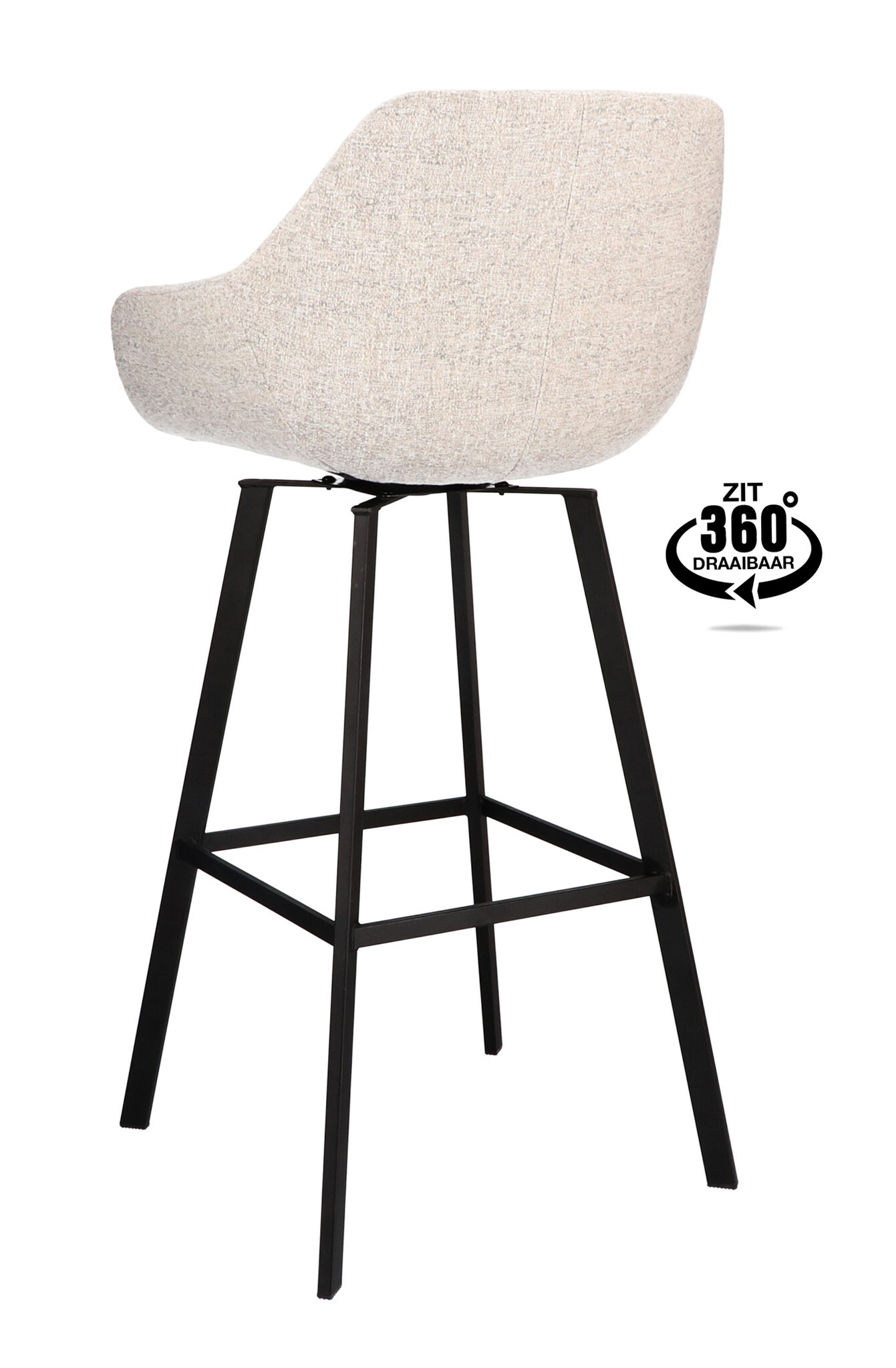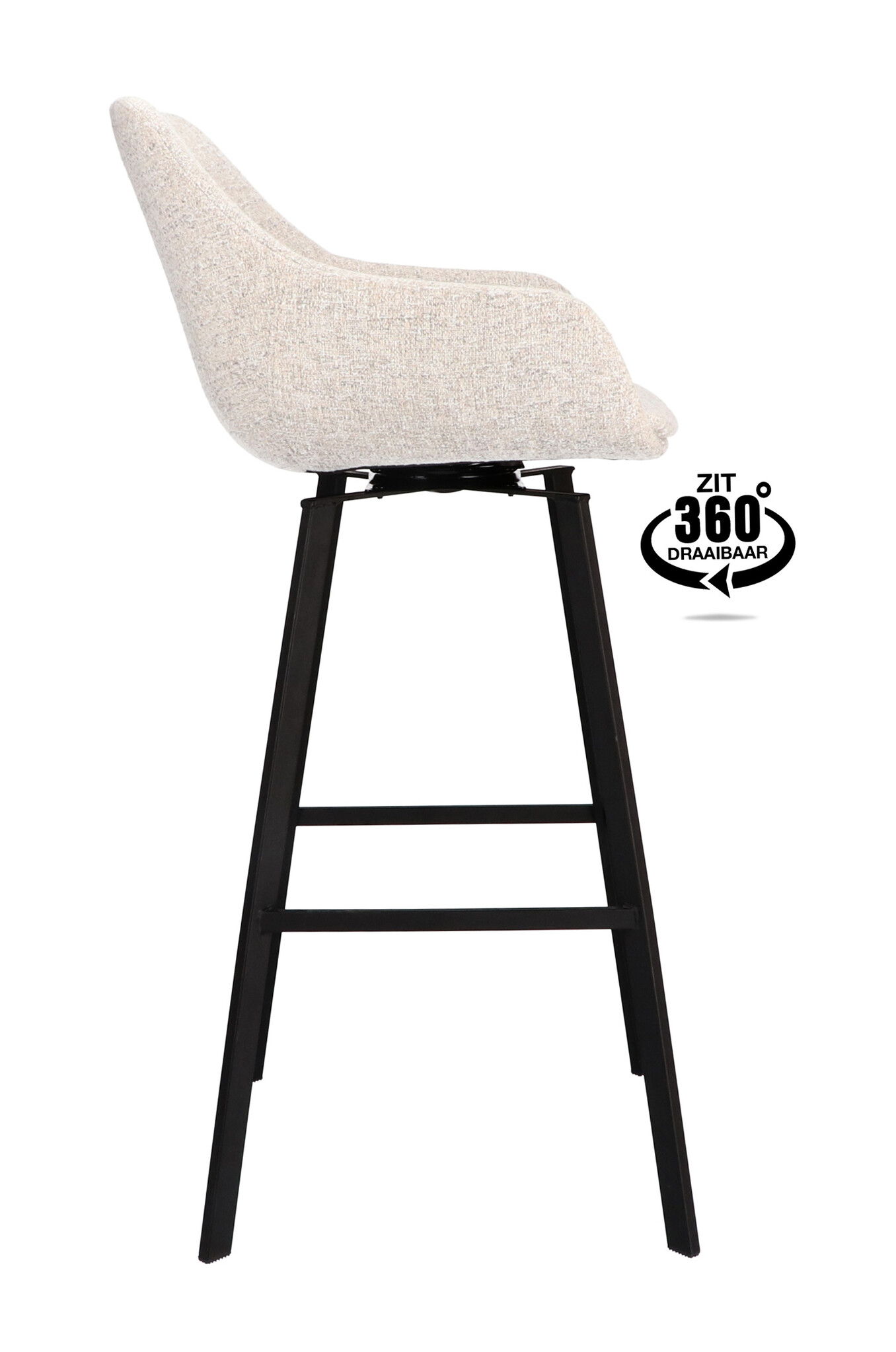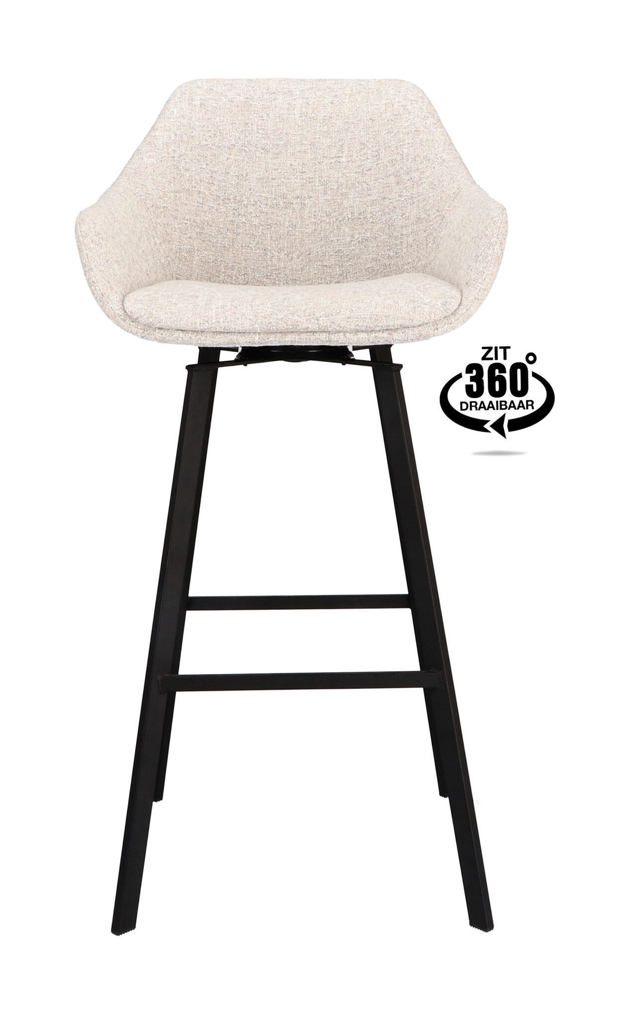 Barstool Luxury is a super cool barstool! Finished in a modern oasis fabric. The legs are made of black steel. Ideal about the bar stool Luxury is that it rotates 360 degrees. Furthermore, this model is available in two heights, so it comes in a seat height of 65 and 80cm, making it a suitable size for any bar or kitchen island.