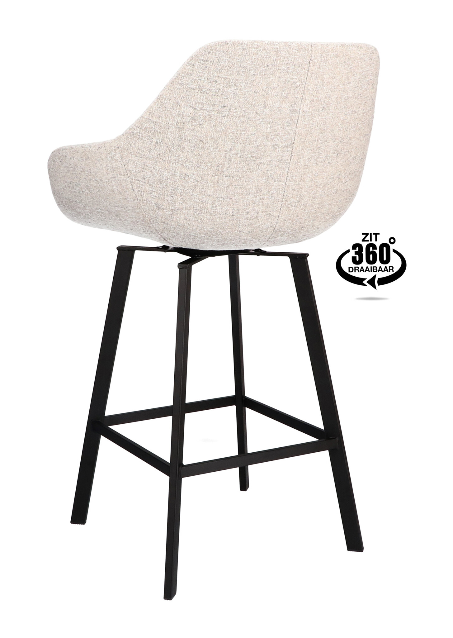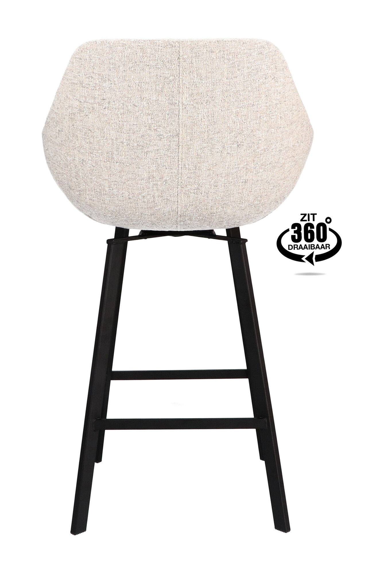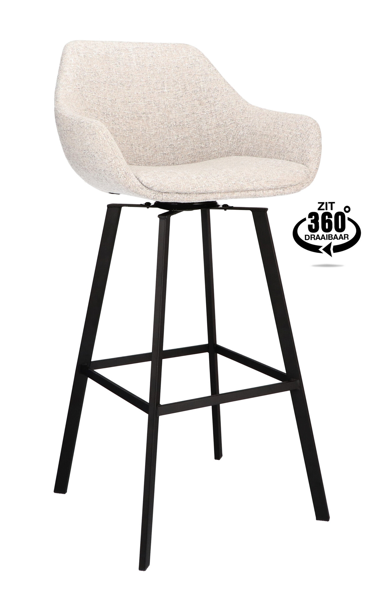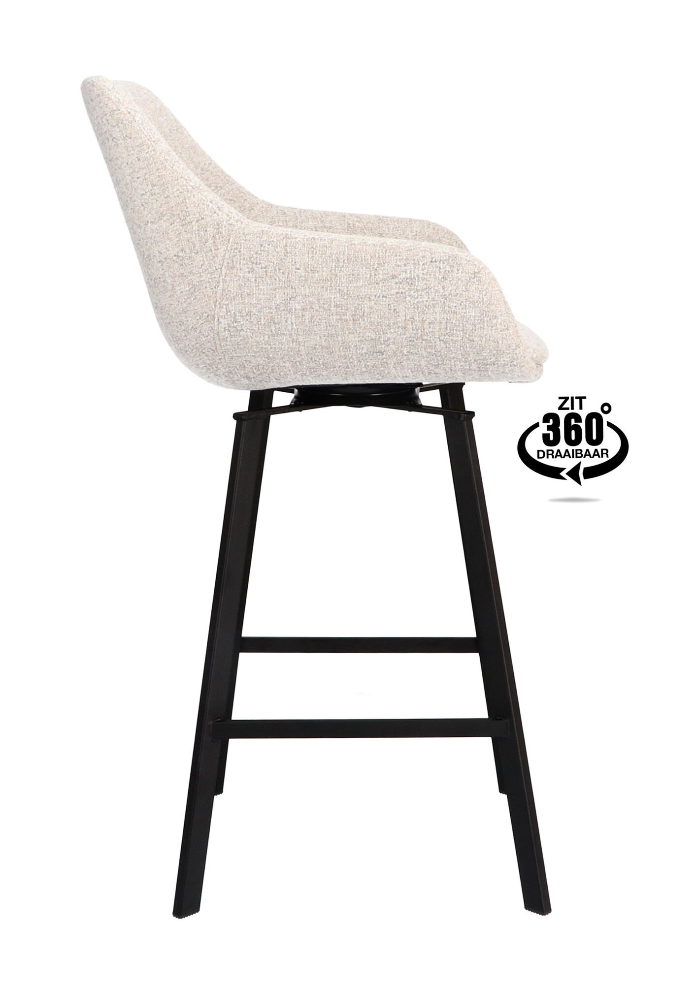 Barstool Luxury is a super cool barstool! Finished in a modern oasis fabric. The legs are made of black steel. Ideal about the bar stool Luxury is that it rotates 360 degrees. Furthermore, this model is available in two heights, so it comes in a seat height of 65 and 80cm, making it a suitable size for any bar or kitchen island.