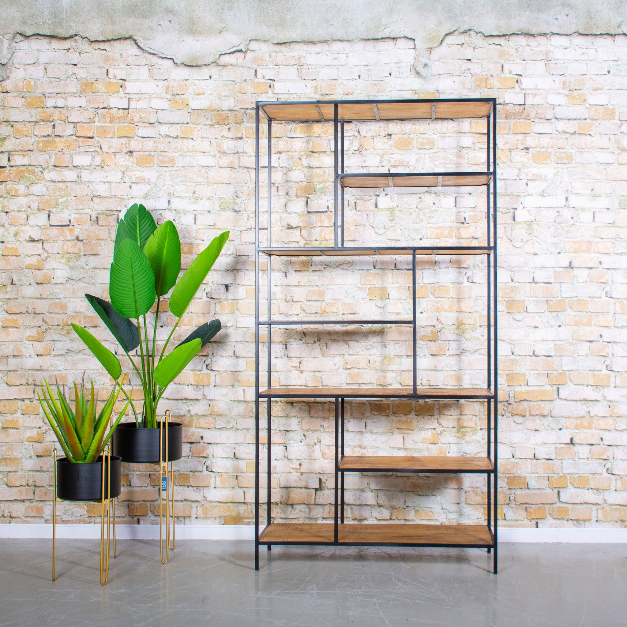 This beautiful bookcase with solid mango wood shelves and steel frame is a real eye cathers in your interior!