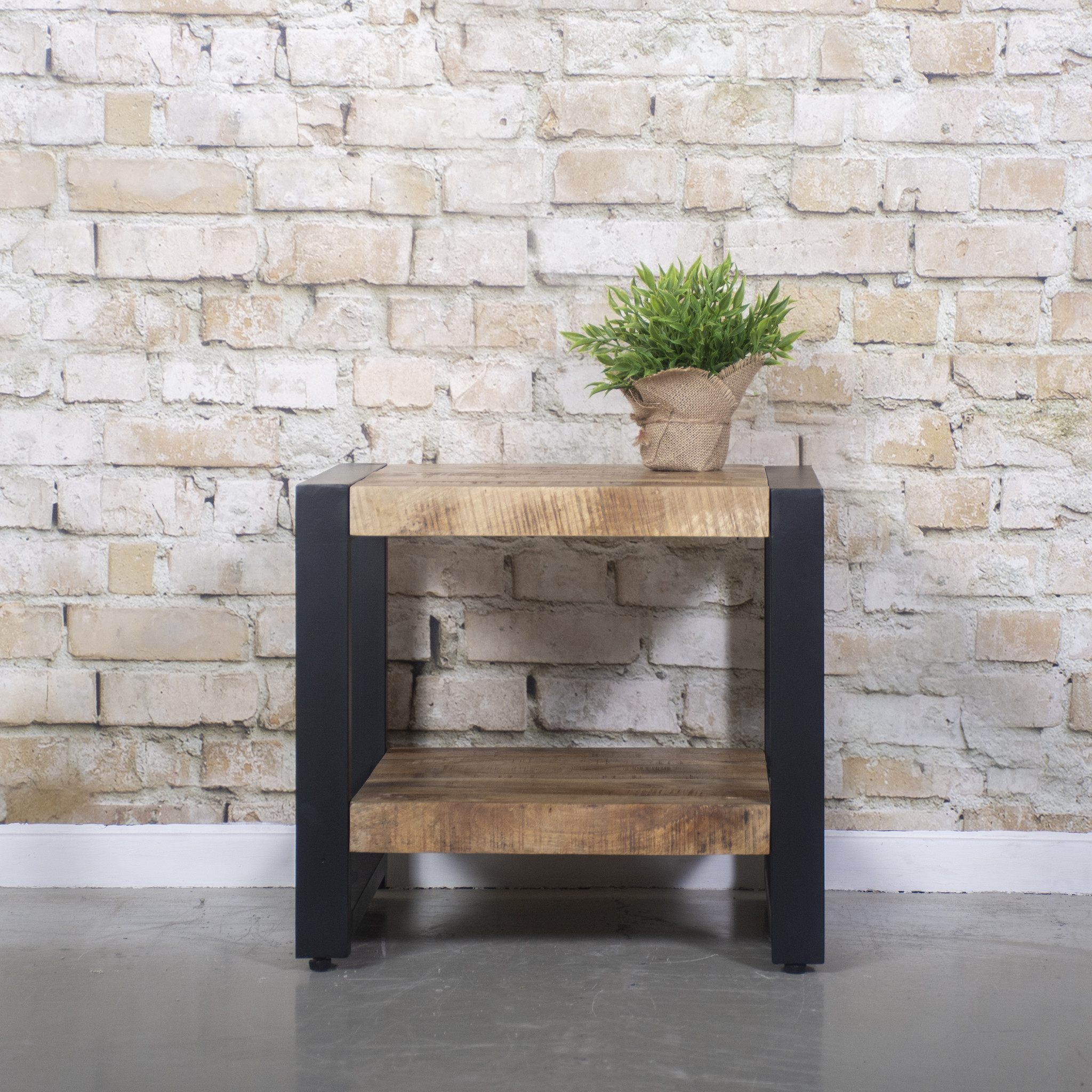 Coffee table Bozz is the perfect coffee table to match any interior. The coffee table is compact, making it easy to combine. The size of the coffee table is 50 x 50 x 45 cm. The coffee table has a beautiful metal finish and a wood shelf underneath. Wood and steel is currently a real interior design trend which this coffee table and living room series responds to. The coffee table is an excellent addition to a country, industrial and modern living style. This coffee table is part of the Bozz living programme. The Bozz living programme consists of a wide range of TV furniture, sideboards, bookcases, bar tables, side tables