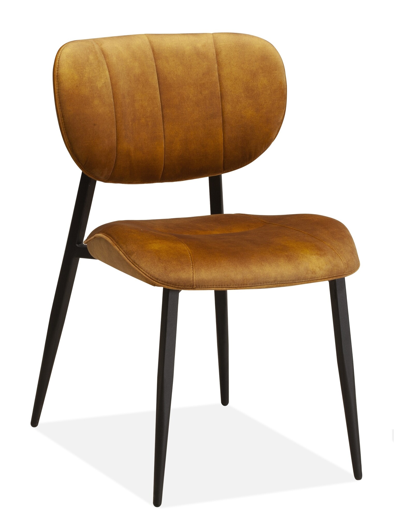 The dining chair Jona envelops itself in a sumptuous velour fabric, available in three beautiful colours: gold, moss green and anthracite. With a soft and cosy seat, the chair is an inviting place to linger. Its distinctive round back adds a touch of elegance, while the black metal base provides a modern touch.