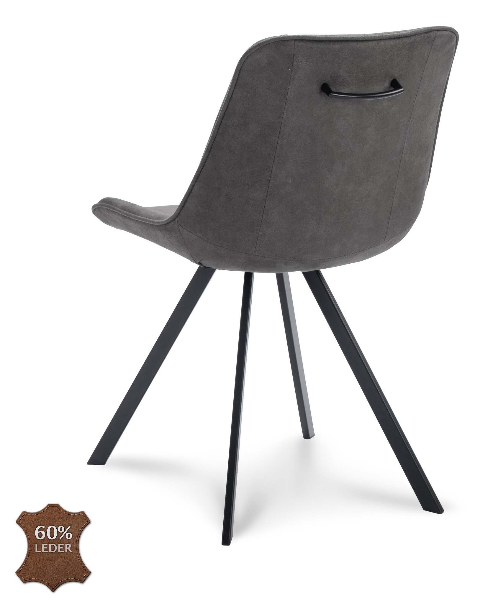 Dining chair Lively Grey Leather | Seat height 48 cm