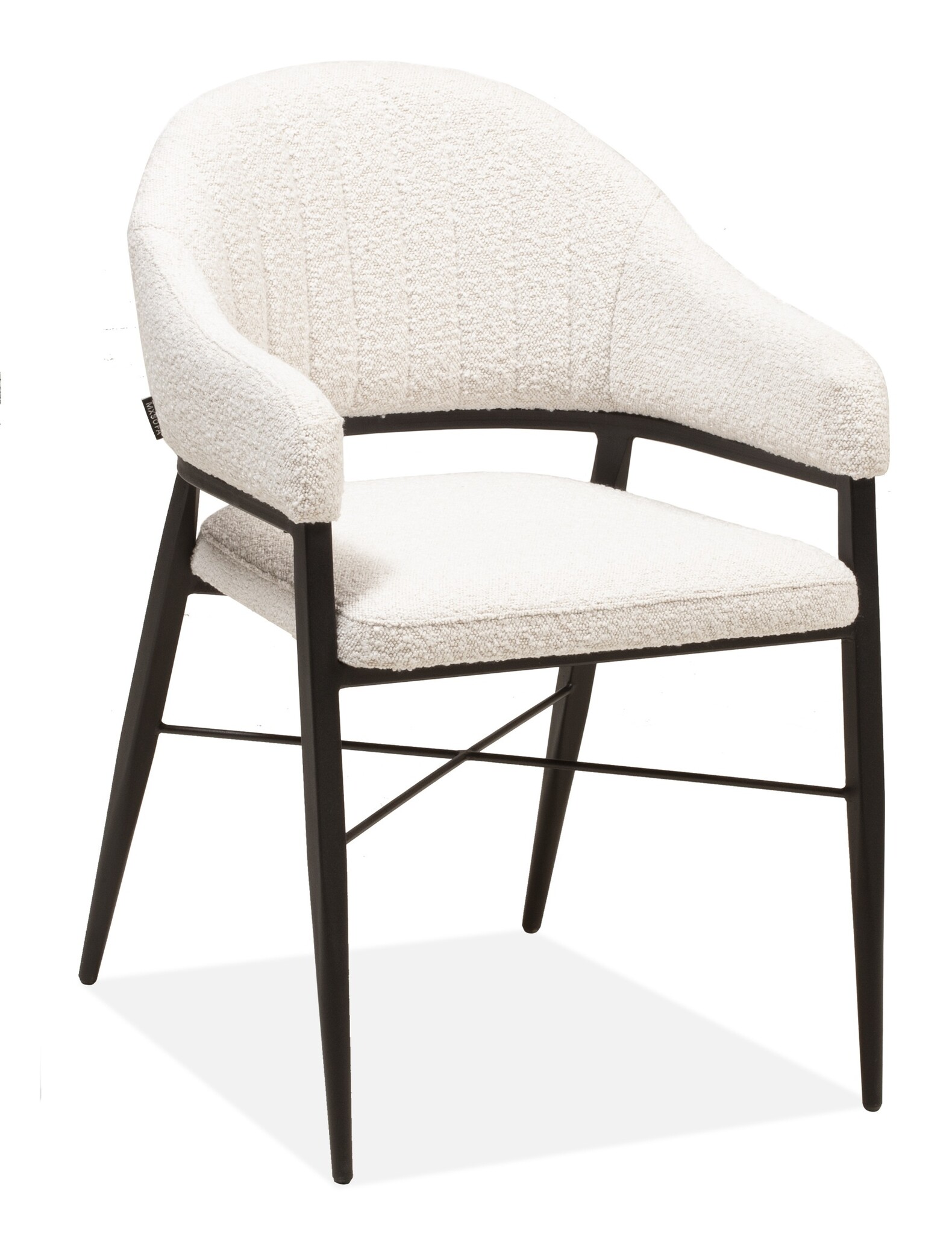 Discover the charming Roma dining chair, a contemporary masterpiece that adds a warm atmosphere to any dining space. Crafted with high-quality boucle material for a luxuriously soft feel and comfortable texture, characterised by beautiful rounded shapes. The sturdy base, with black powder-coated finish, ensures stability and long-lasting durability. Choose from three sophisticated colours - Touche Mouse, Touche Pearl and Touche Toffee - to perfectly match your unique interior style.