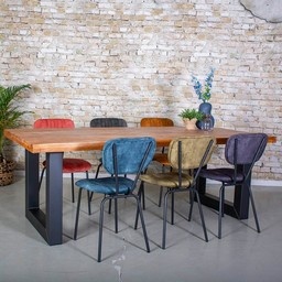 This dining table is made of mango wood. The combination of the wood with the steel, robust frame gives the table a beautiful industrial look. Thanks to the neutral colours, this table can be perfectly combined in various interior styles such as rural, industrial, vintage and a modern interior. The top has a beautiful colour and features robust darker accents. Mango wood is a natural material which makes each table unique. Our mango wood tops have a combination of an industrial and colonial look.