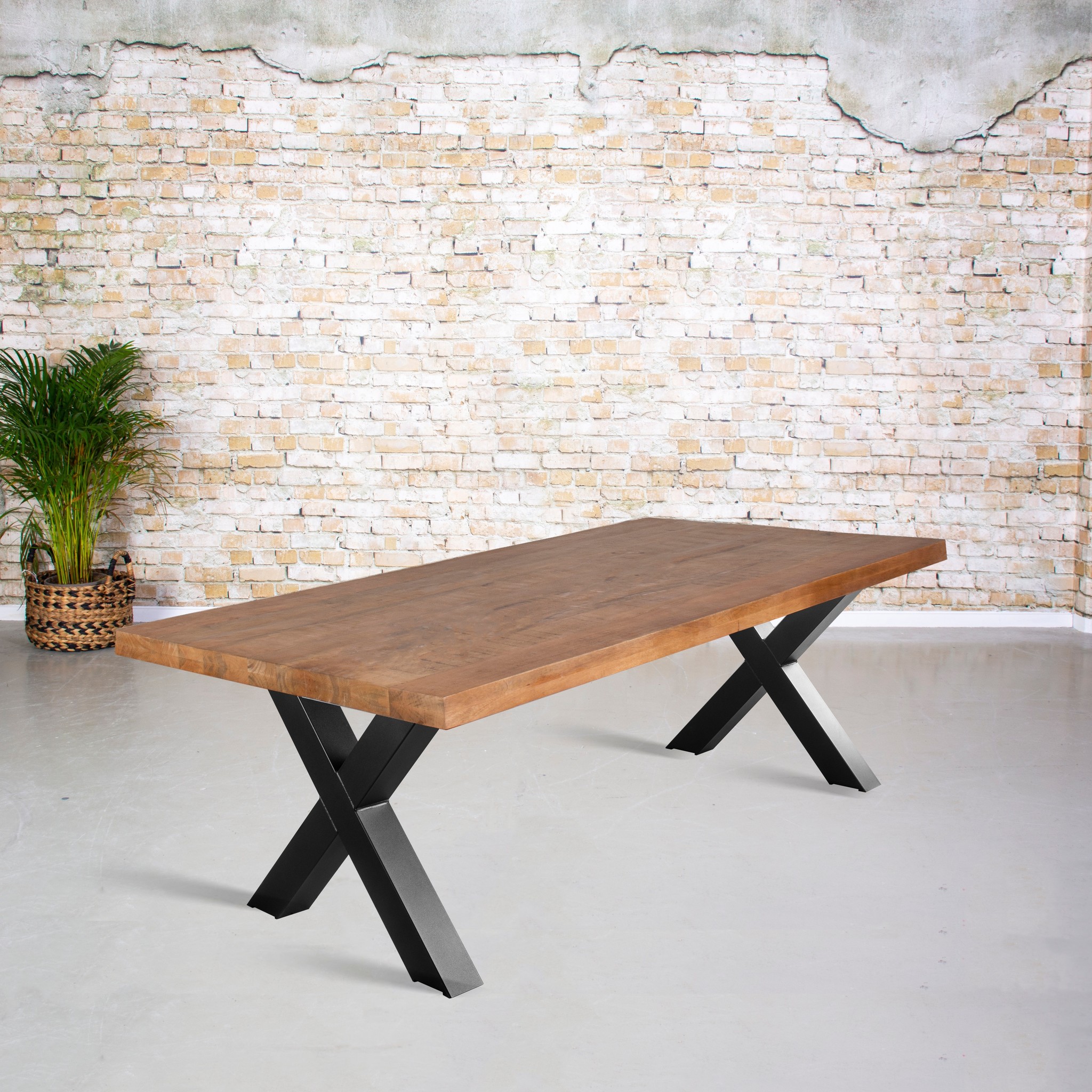 This dining table is made of mango wood. The combination of the wood with the steel, robust frame gives the table a beautiful industrial look. Thanks to the neutral colours, this table can be perfectly combined in different interior styles such as rural, industrial, vintage and a modern interior. The top has a beautiful colour and features robust darker accents. Mango wood is a natural material which makes each table unique. Our mango wood tops have a combination of an industrial and colonial look.
