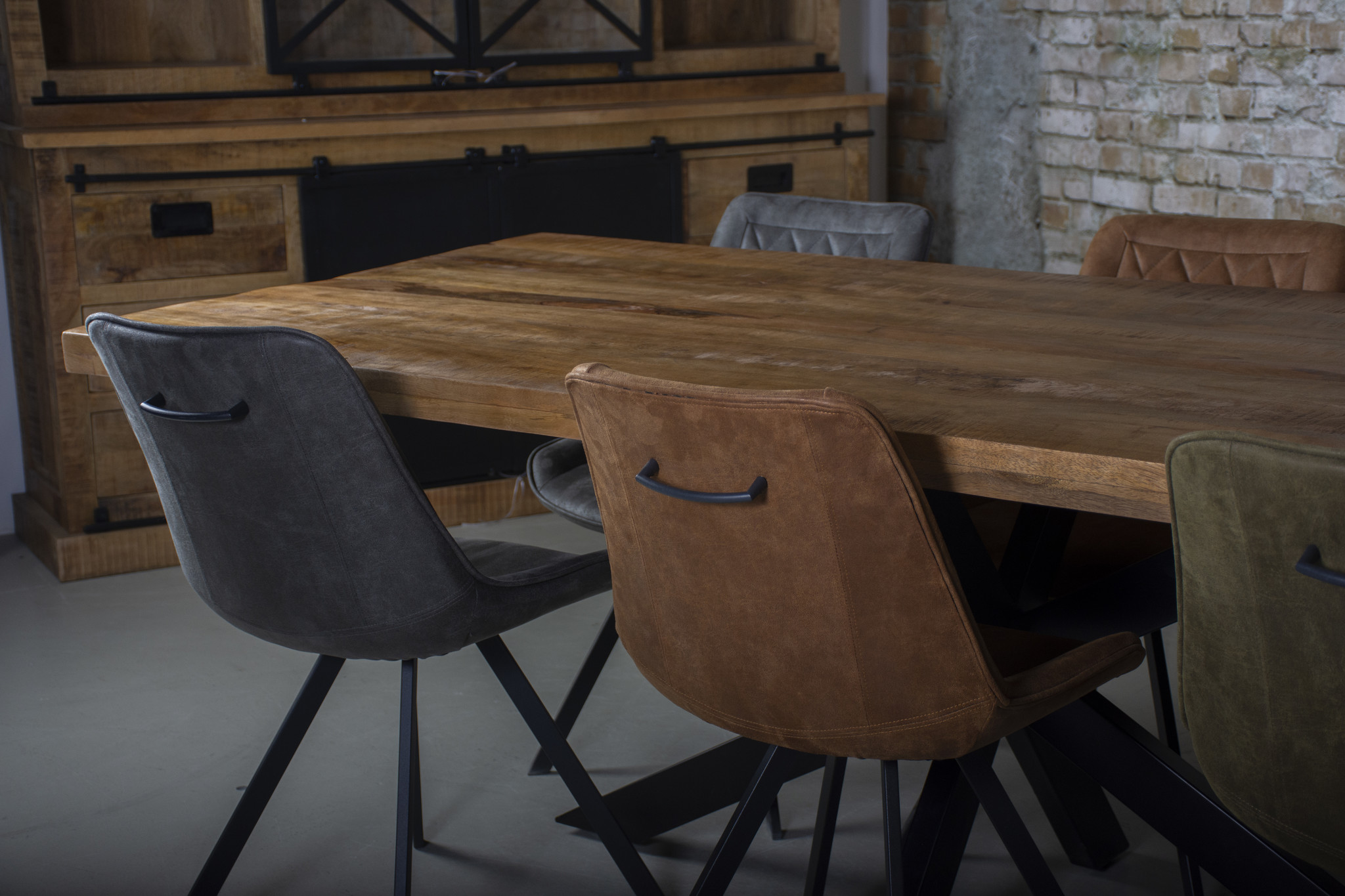 This dining table is made of mango wood. The combination of the wood with the steel, robust frame gives the table an industrial look. Thanks to the neutral colours, this table can be perfectly combined in different interior styles such as rural, industrial, vintage and a modern interior. The top has a beautiful colour and features robust darker accents. Mango wood is a natural material, each table may vary in colour and finish. Our mango wood tops have a combination of an industrial and colonial look. The iron spider leg provides a luxurious look. This dining table is available in five different sizes, namely 160 , 180, 200, 220 and 240