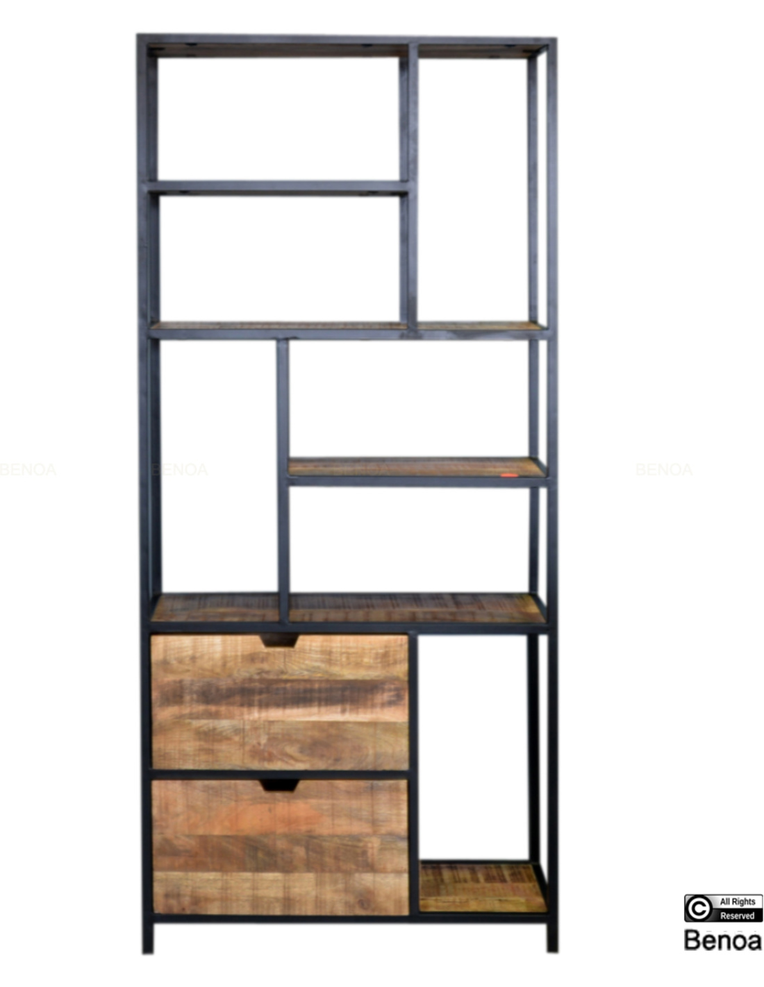 This beautiful bookcase with solid mango wood shelves and steel frame is a real eye cathers in your interior!