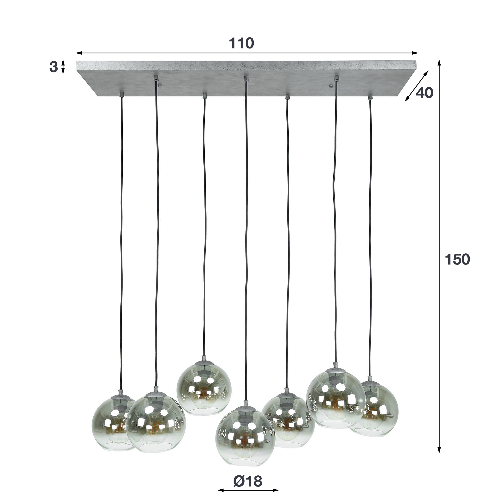 This pendant lamp 'Bubble shaded' is a real eye-catcher and gives a trendy look to any interior. This pendant lamp is made of smoked glass with a beautiful gradient. These lamps are each individually adjustable to 150 cm in height and can be staggered at will.
