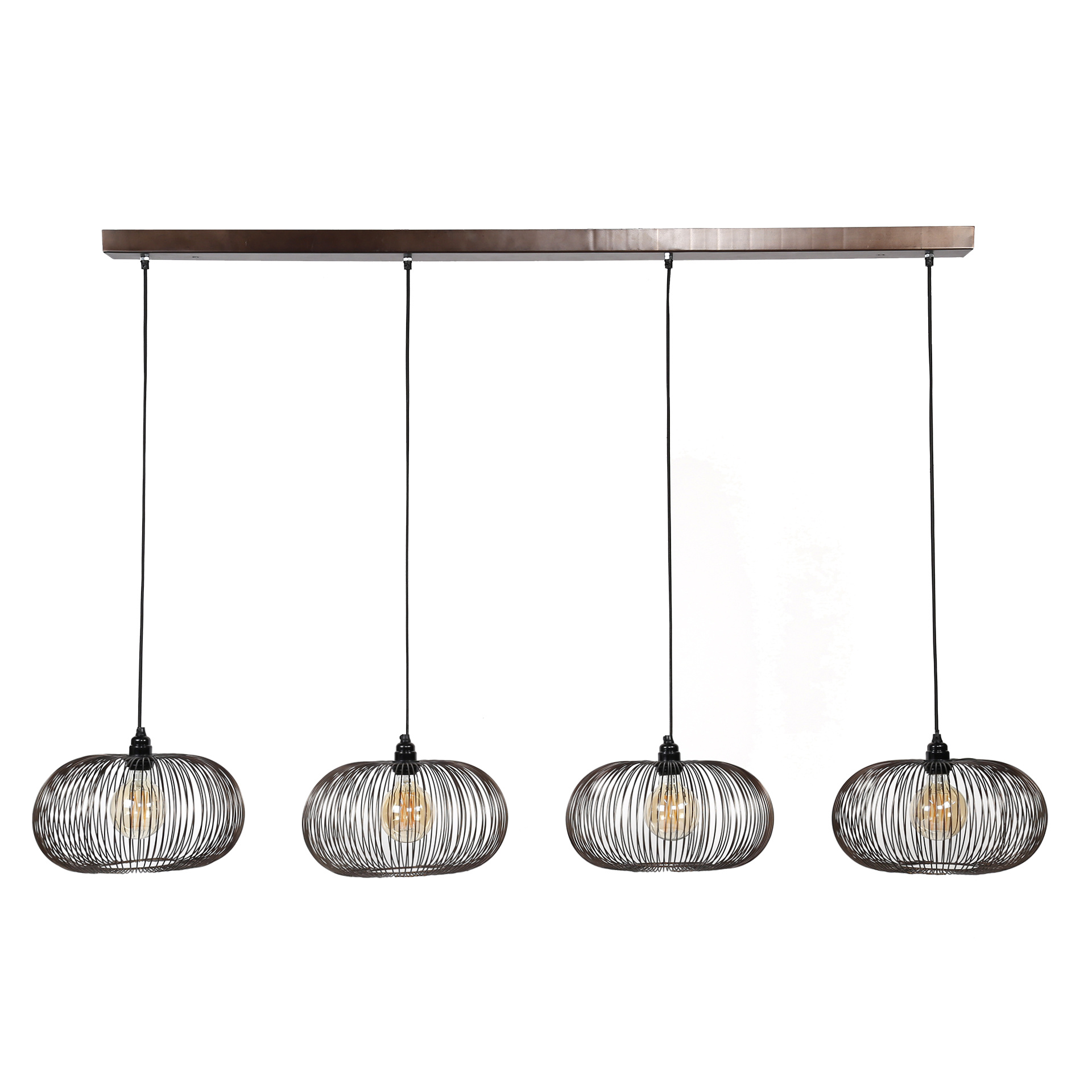 Pendant lamp Twister 4x Ø35 disk wire copper