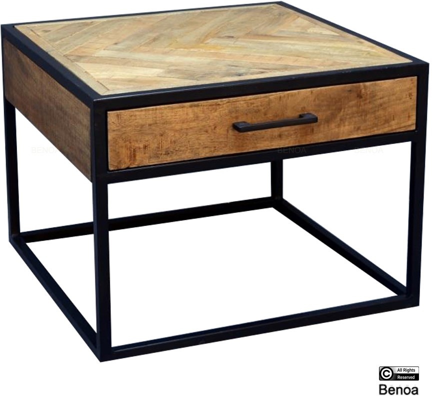 Side table Jax is made of mango wood with a herringbone pattern and a black steel frame. This elegant side table Jax has 1 drawer in which you can store things. This side table has the size 60x60x45 cm and is also available in the size 120x60x45 cm. The Jax collection consists of a TV cabinet, sideboard, compartment cabinet and a side table.