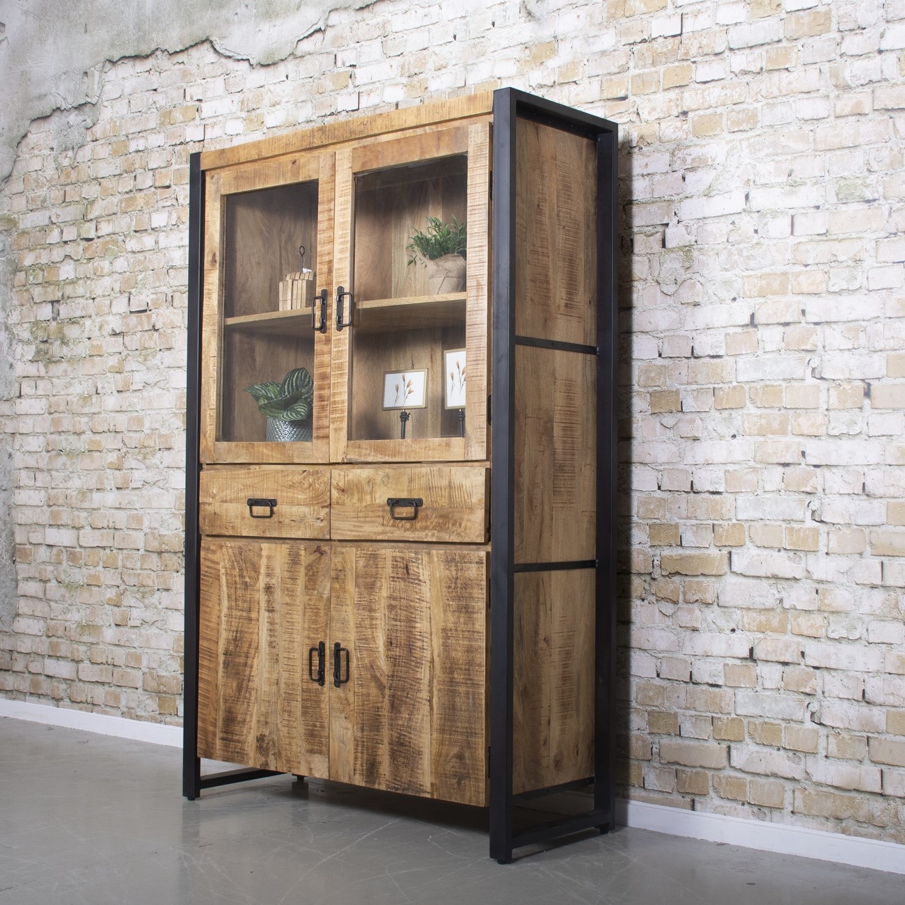 The Brev living range is made of mango wood with beautiful colour shades. The series suits every interior. The sideboard cabinet measures 115 x 45 x 180 cm. This display cabinet has beautiful steel finishes. The combination of wood and steel is always beautiful. This display cabinet is a great addition to both a country, modern and industrial style. The cabinet has four doors and two drawers. Behind two of the doors there is glass to display items. The lower cabinets are closed to keep things out of sight. In the Brev series we have an extensive range, including TV units, coffee tables, sideboards, bookcases, side tables and dining tables in various sizes and configurations.