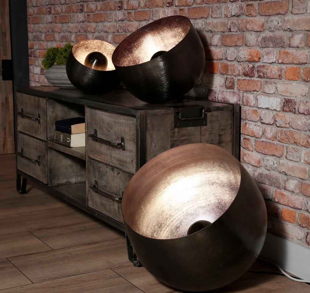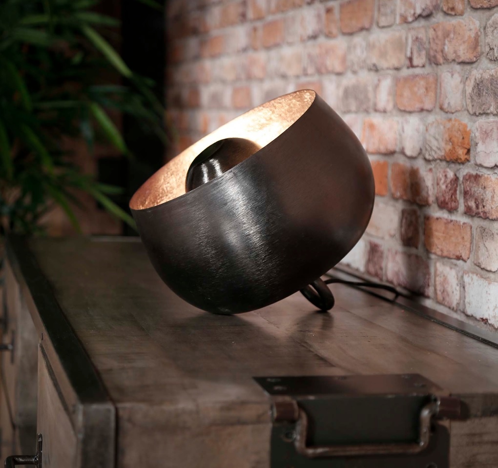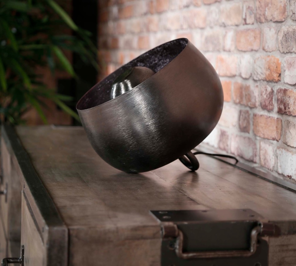 This table lamp is finished in black nickel, creating a trendy lamp with a vintage touch. Inside, a reflector shade has been used which provides a beautiful and amplified look to the light. This reflector shade can be used as you wish, which makes it easy to remove. The lamp has no legs, so it lies on its side. When using the reflector cap, LED light sources of 4.5 cm diameter are recommended. This lamp is also available in two larger versions. Lamp does not include light source.