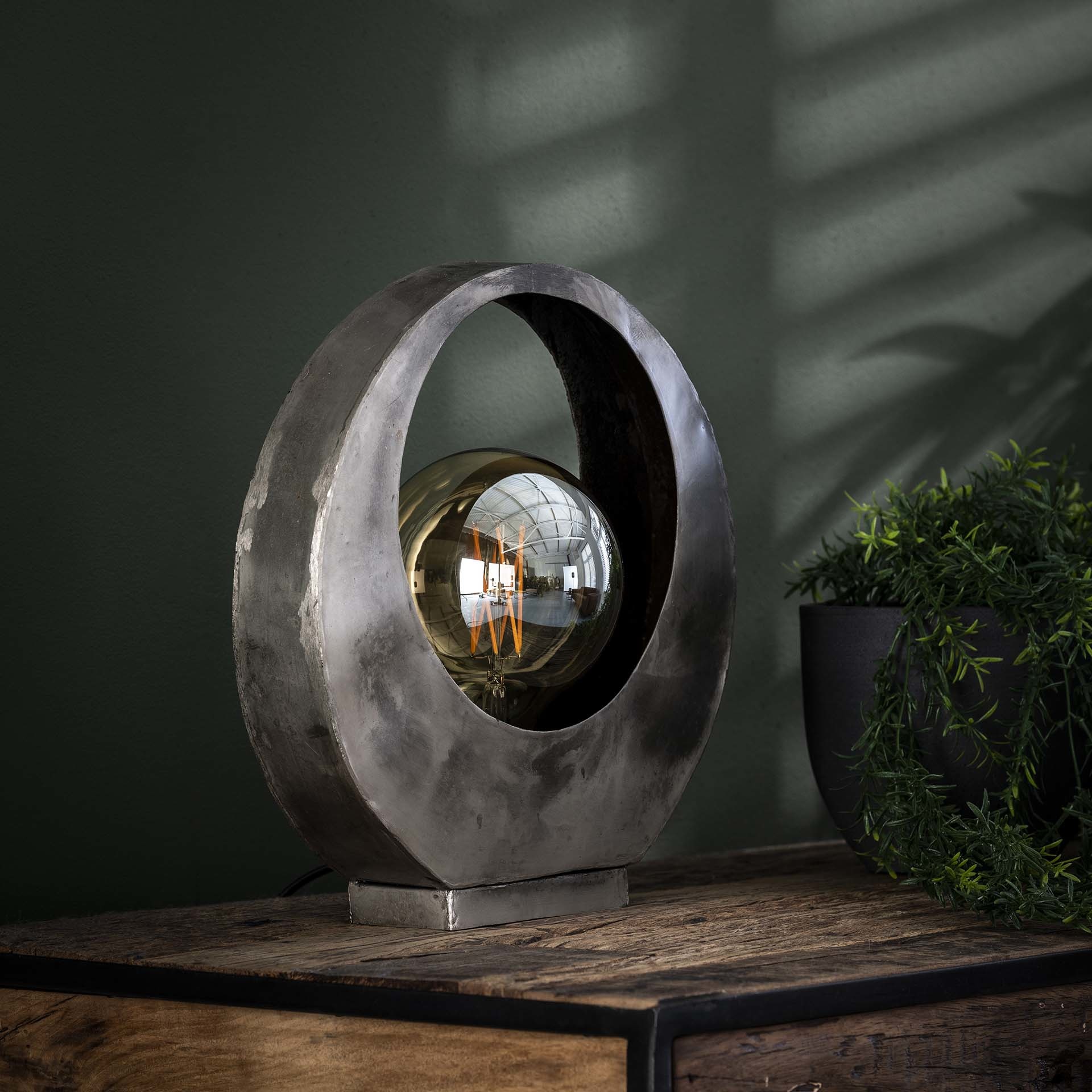 The table lamp Full Moon is available in the colour old silver and is made of thin metal. The lamp has a vintage look and an open structure that provides a nice diffusion of light. The lamp has an extremely industrial look, which is reflected in the rough finish of the welds. Because the lamp is handmade, the finish is somewhat rougher than that of similar other lamps. The full moon table lamp is ideal for the sideboard, occasional table or bedroom. This trendy lamp also comes in a half moon version.