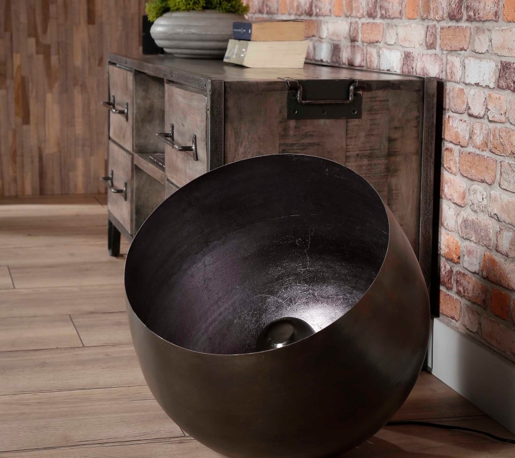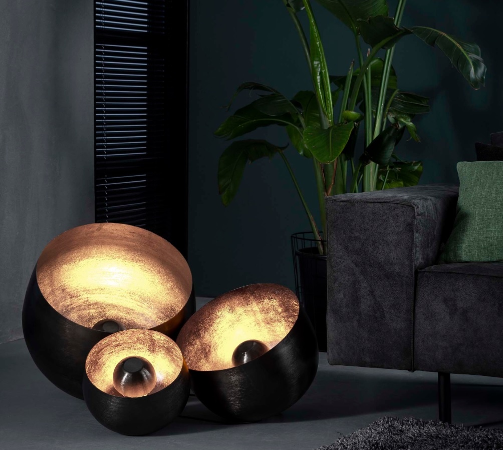 This table lamp is finished in black nickel, creating a trendy lamp with a vintage touch. Inside, a reflector shade has been used which provides a beautiful and amplified look to the light. This reflector shade can be used as you wish, which makes it easy to remove. The lamp has no legs, so it lies on its side. When using the reflector cap, LED light sources of 4.5 cm diameter are recommended. This lamp is also available in two larger versions. Lamp does not include light source.
