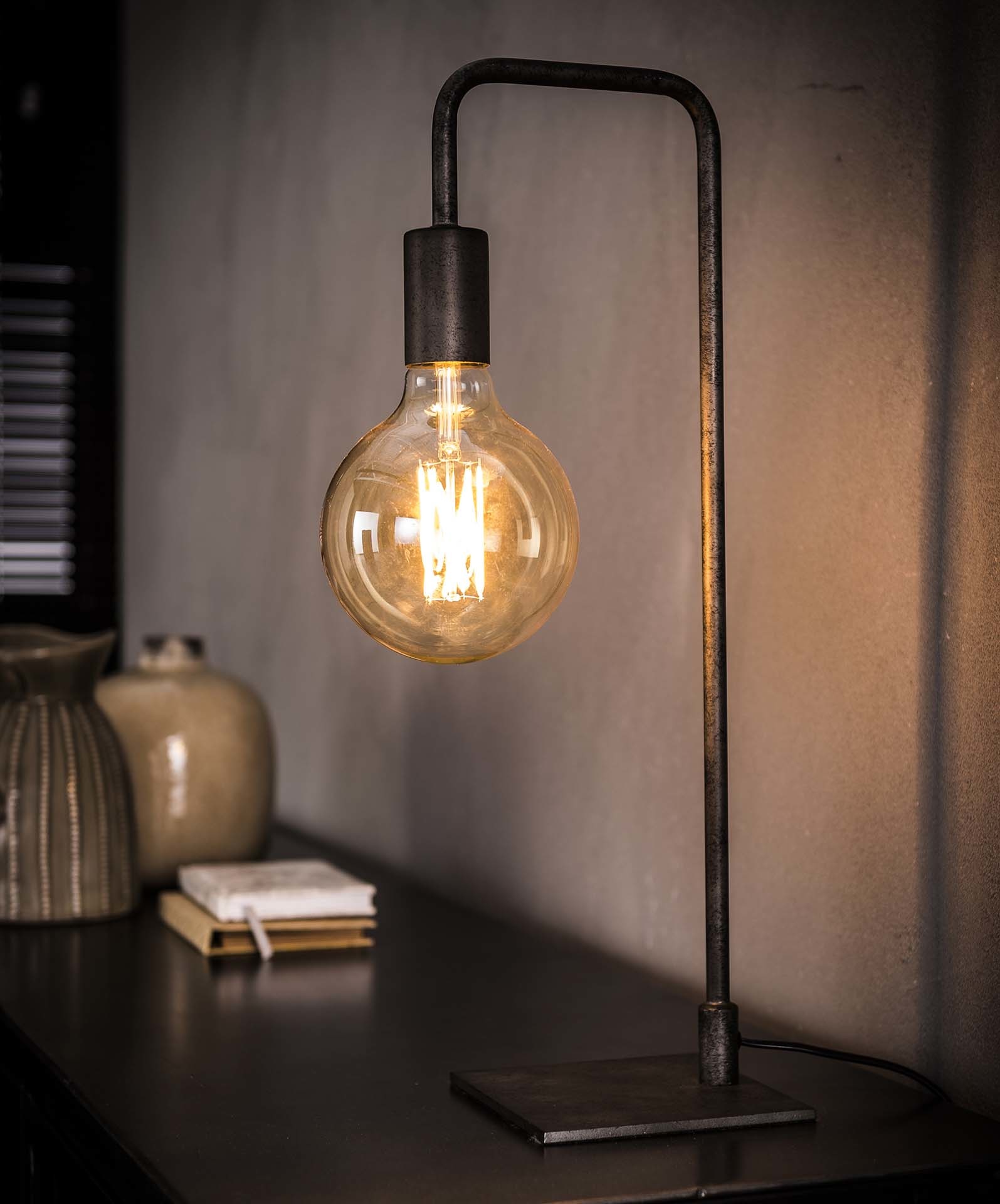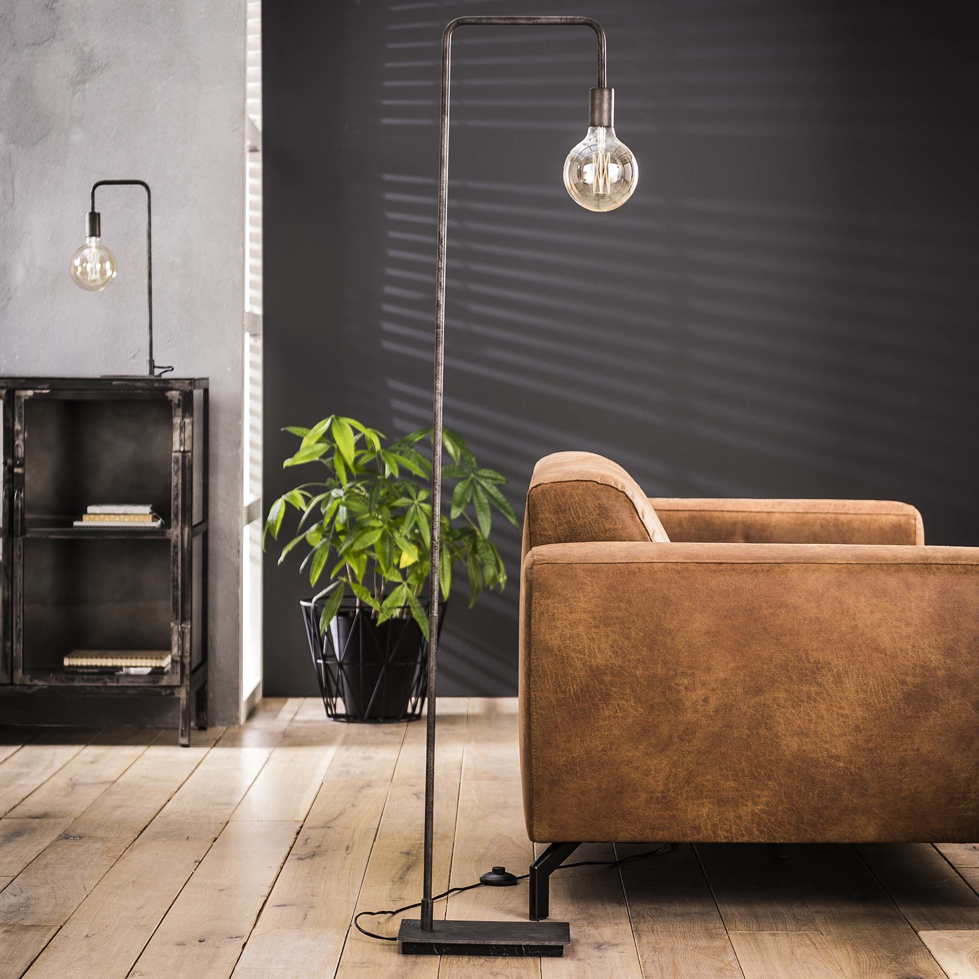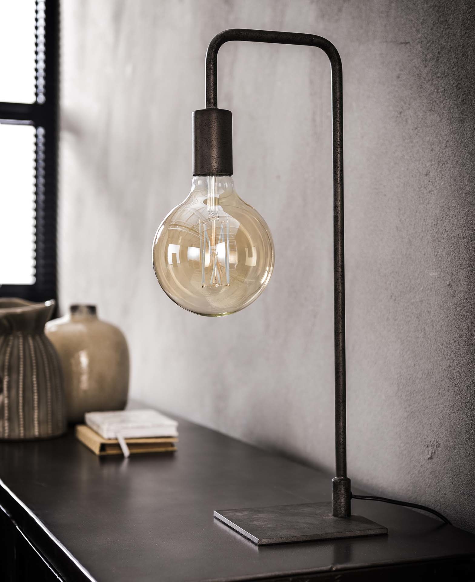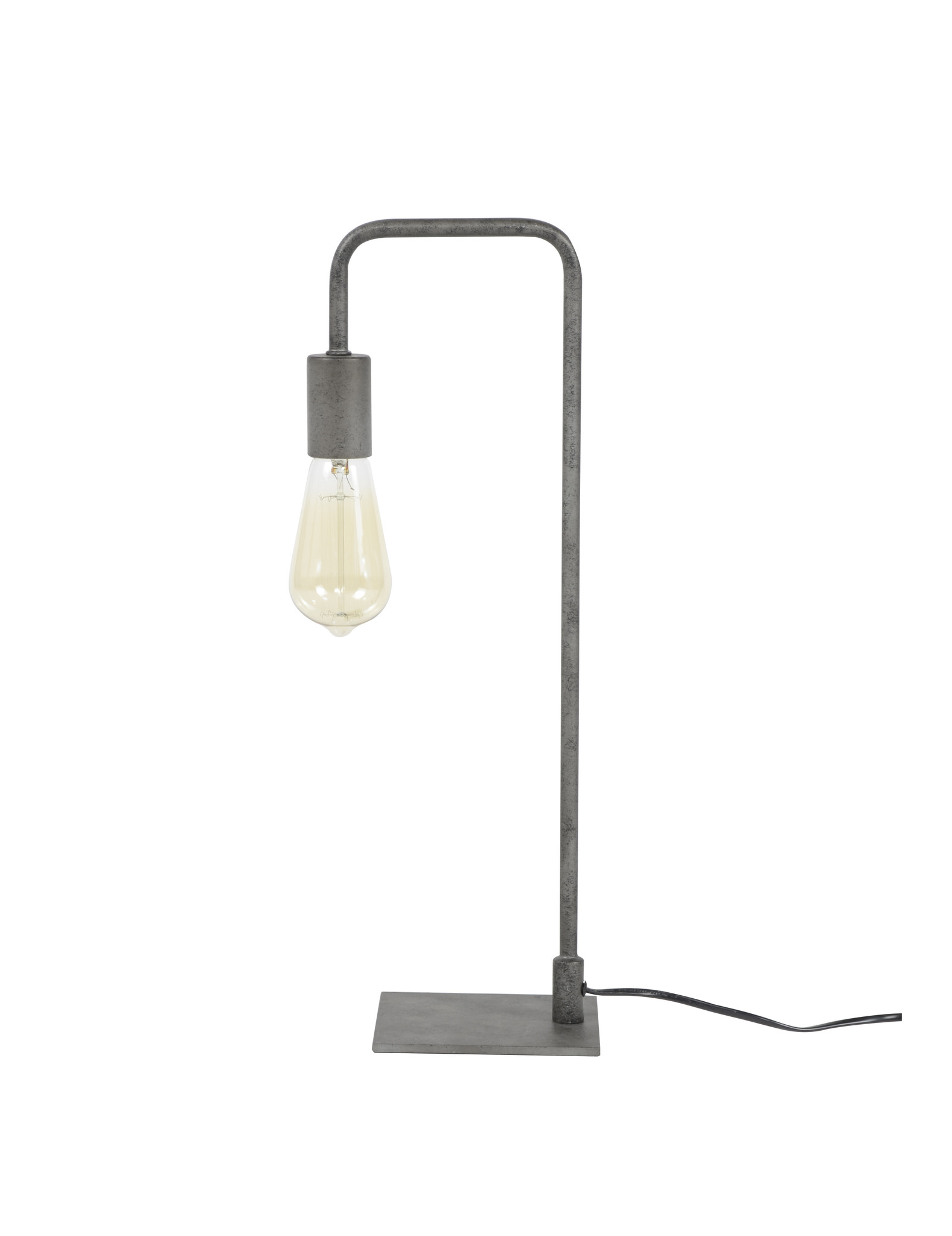 This metal subtle table lamp executed in metal with an old silver finish fits nicely into any interior. The lamp has a slim round tube and a square flat base. Lamp does not include light source.