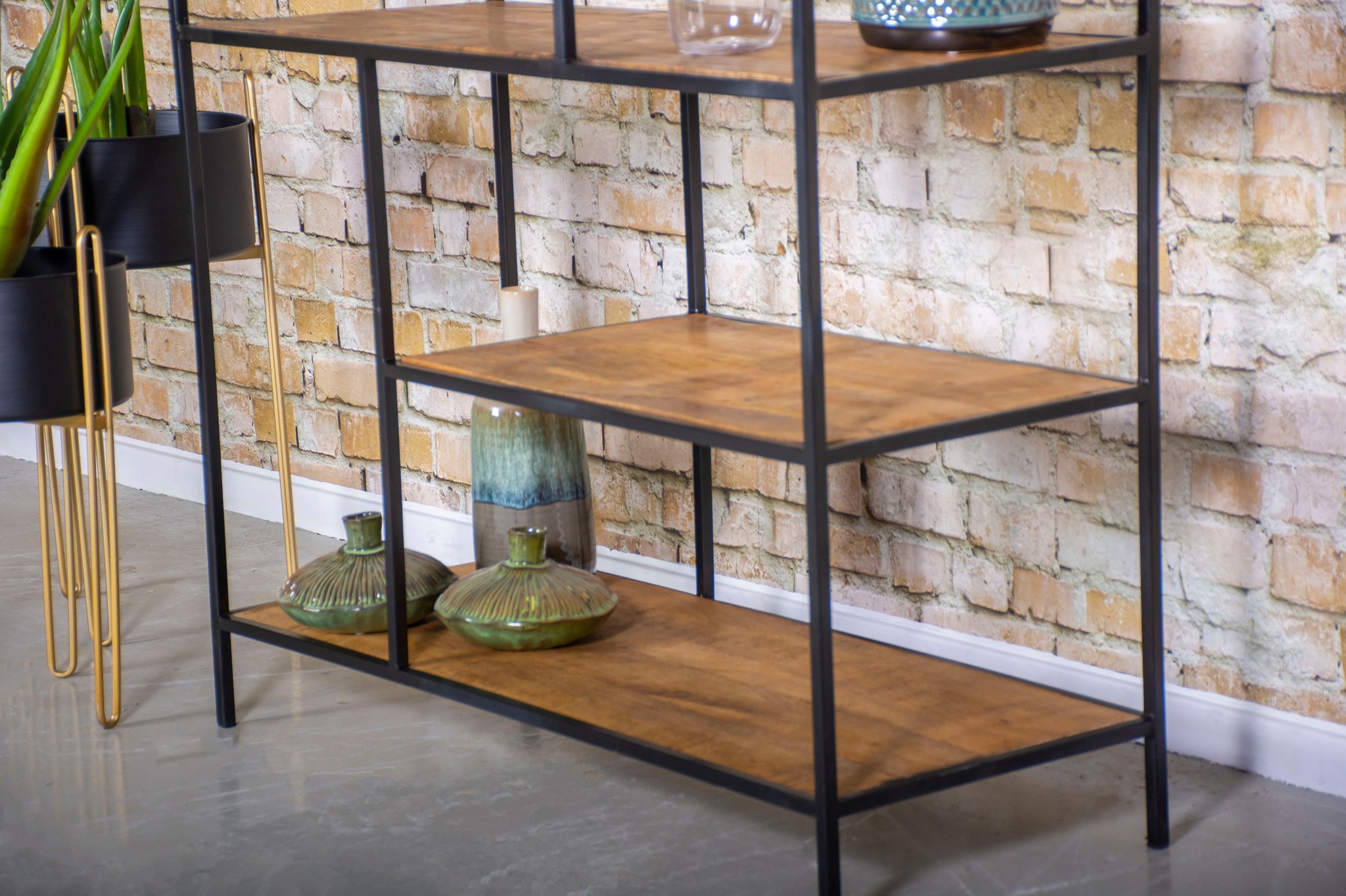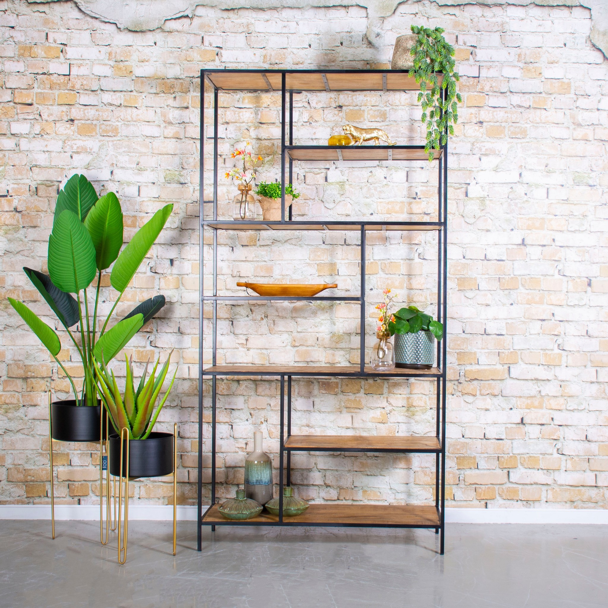 Deze prachtige boekenkast met massief mango houten planken en stalen frame is een echte eye cathers in uw interieur!