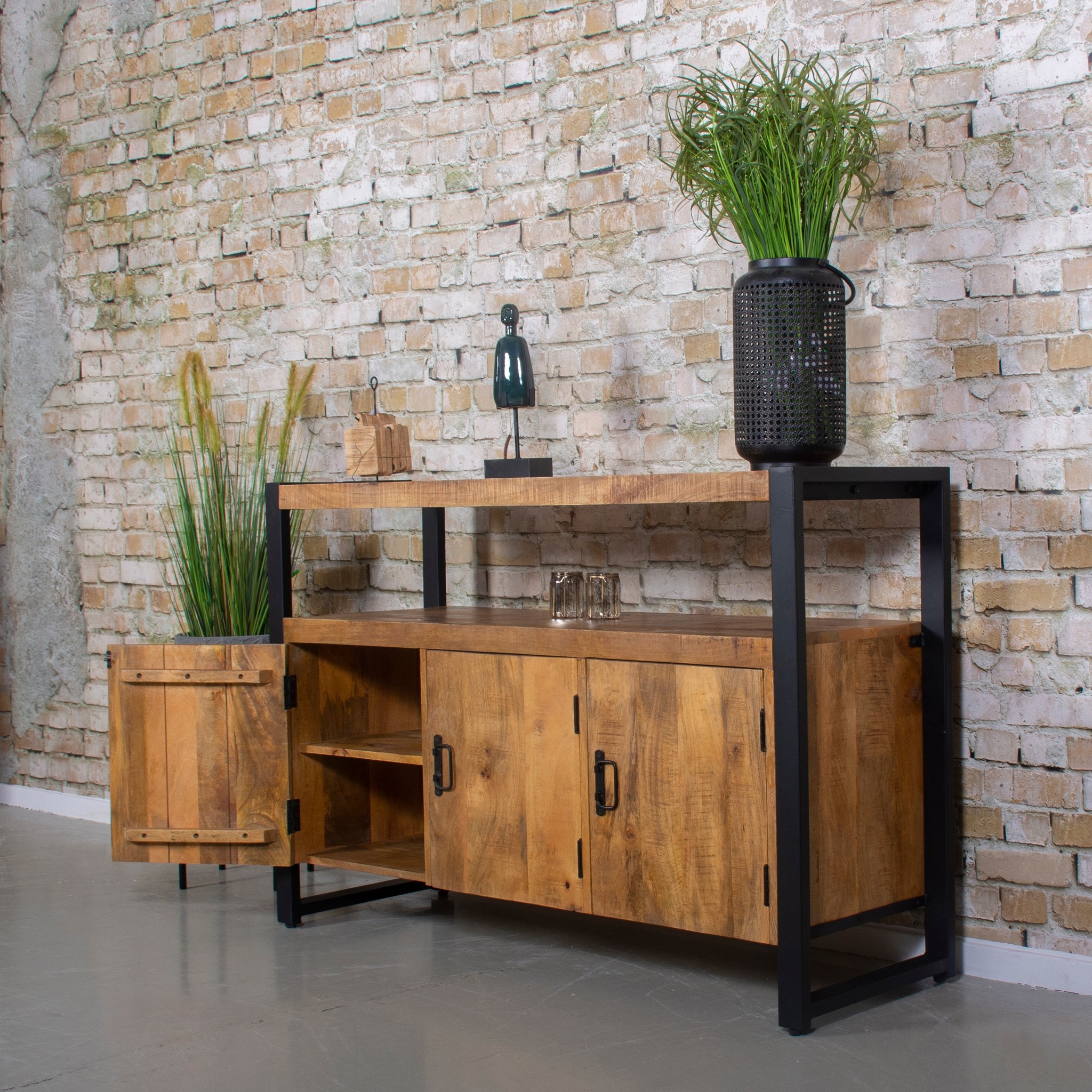 Dressoir Brev, gemaakt van mangohout met stalen frame. Het dressoir heeft 3 kasten en één open vak. Dit dressoir is 135 cm lang. De Brev woon serie is een prachtige serie voon ieder interieur. In de Brev serie hebben wij een uitgebreid aanbod ,zo hebben we ook tv-meubels, salontafels, dressoirs, boekenkasten, buffetkasten, side-tables en eettafels in verschillende afmetingen en opstellingen.